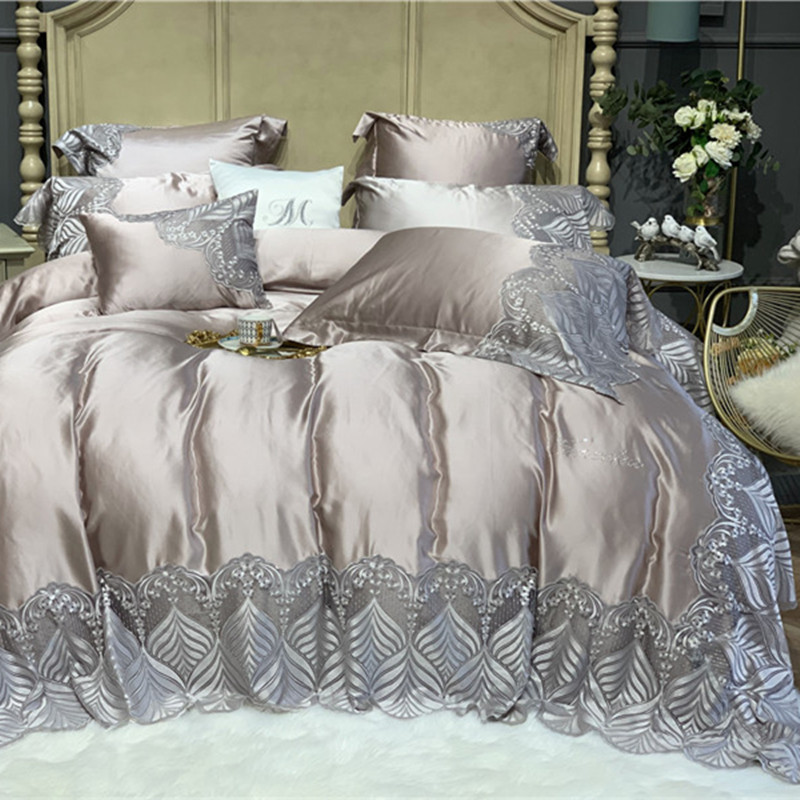 French-style silk cotton lace four-piece set 120-count Egyptian long-staple cotton model room luxury European-style 1 8m bedding