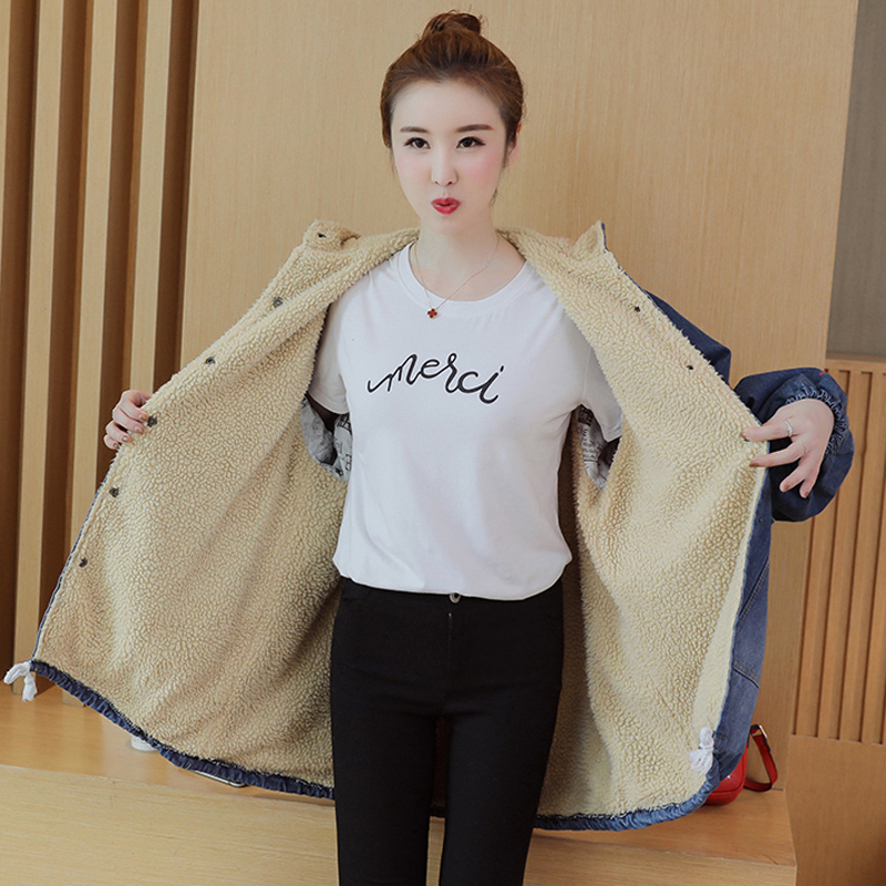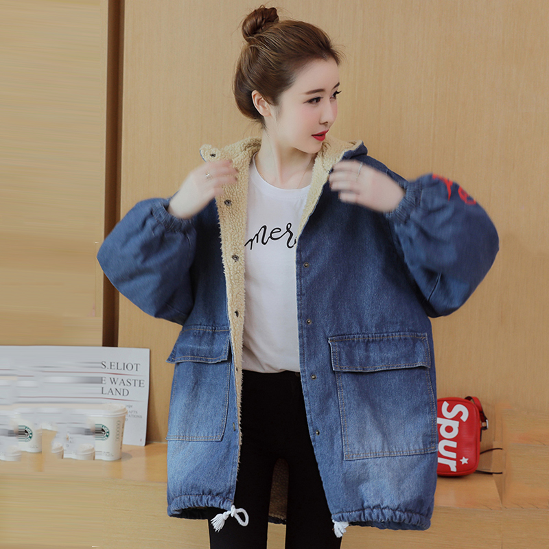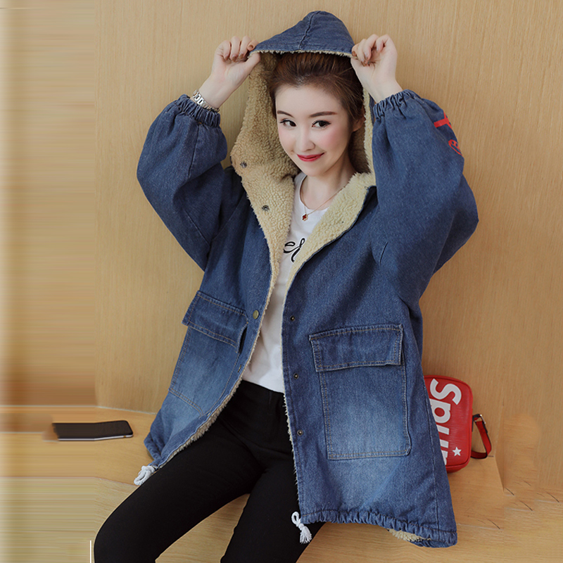 2022 new trends with long cotton suit jacket female winter Korean version large size women's clothing student cashmere denim jacket