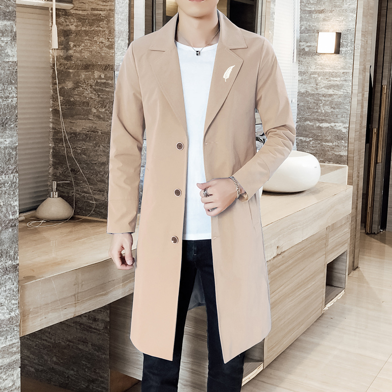 Thin windbreaker men's 2022 spring and autumn new men's trend Korean version slim mid-length khaki coat