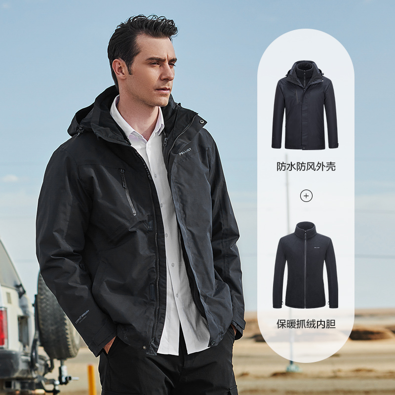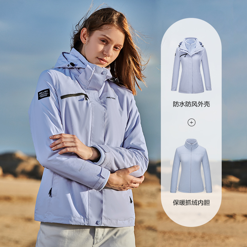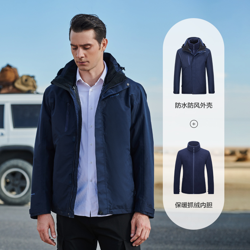 Percy and Jackets men's and women's outdoor three-in-one detachable autumn and winter jacket plus velvet thickening Korean windproof mountaineering suit