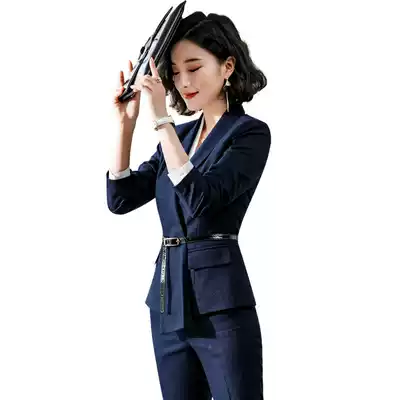 High-end professional suit women's spring and Autumn fashion formal dress blue temperament goddess fan suit beauty salon overalls autumn