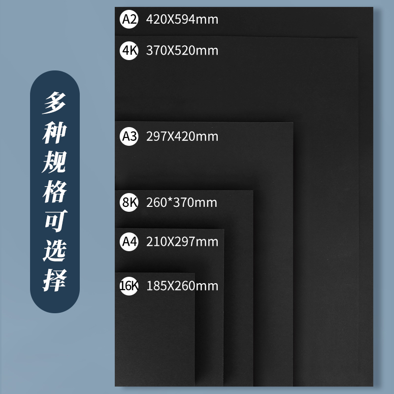 Long print A2 black cardboard 80g 2 open 180 gr 230 gr thick hard phase book cover paper a2 painted fine art paper thickened A1 black cardboard hand-painted a1 black cardboard 2K large sheet black drawing paper