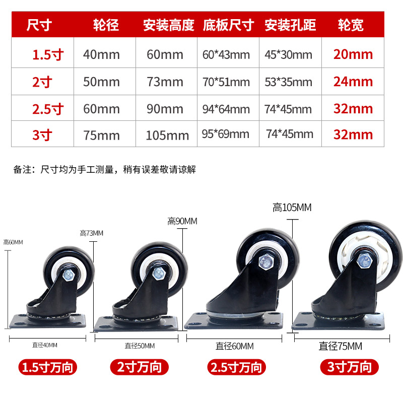 1 5 inch orientation 1 5 inch universal 1 5 inch universal with brake 2 inch orientation 2 inch universal 2 inch universal with brake 2 5 inch orientation 2 5 inch universal 2 5 inch