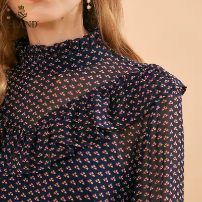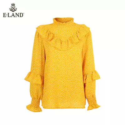 ELAND clothes love spring and summer fashion design sense niche semi-high neck ruffle long sleeve chiffon polka dot shirt women