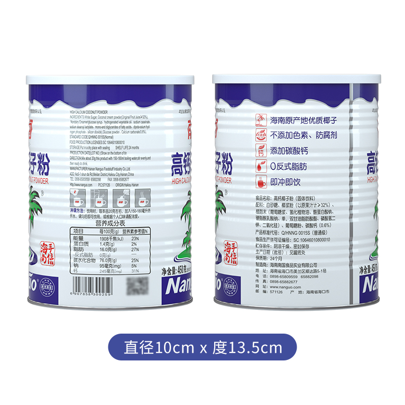 Nanguo High Calcium Coconut Powder 450g Canned Authentic Hainan Specialty Instant Coconut Milk Coconut Milk Powder for Drinking