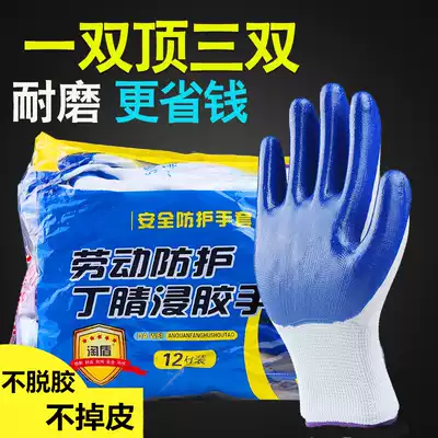Gloves labor insurance wear-resistant nitrile rubber rubber leather work latex male workers work on the ground non-slip waterproof thickened with glue