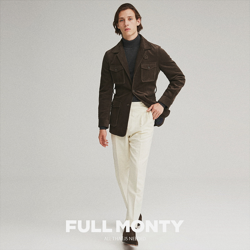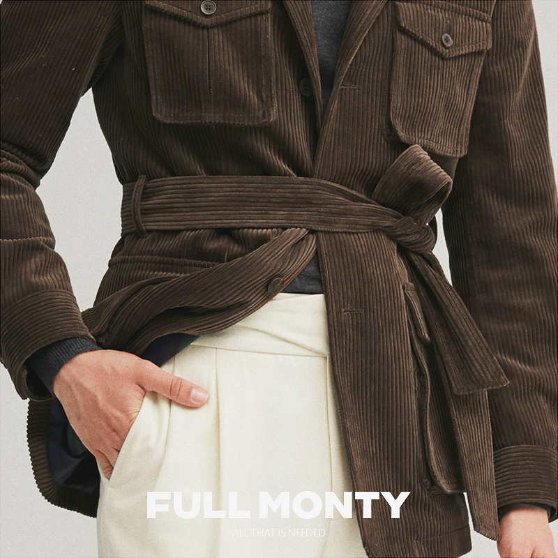 FULL MONTY chocolate color hunting imported pure cotton coarse lamp core suede belt jacket male youth jacket jacket