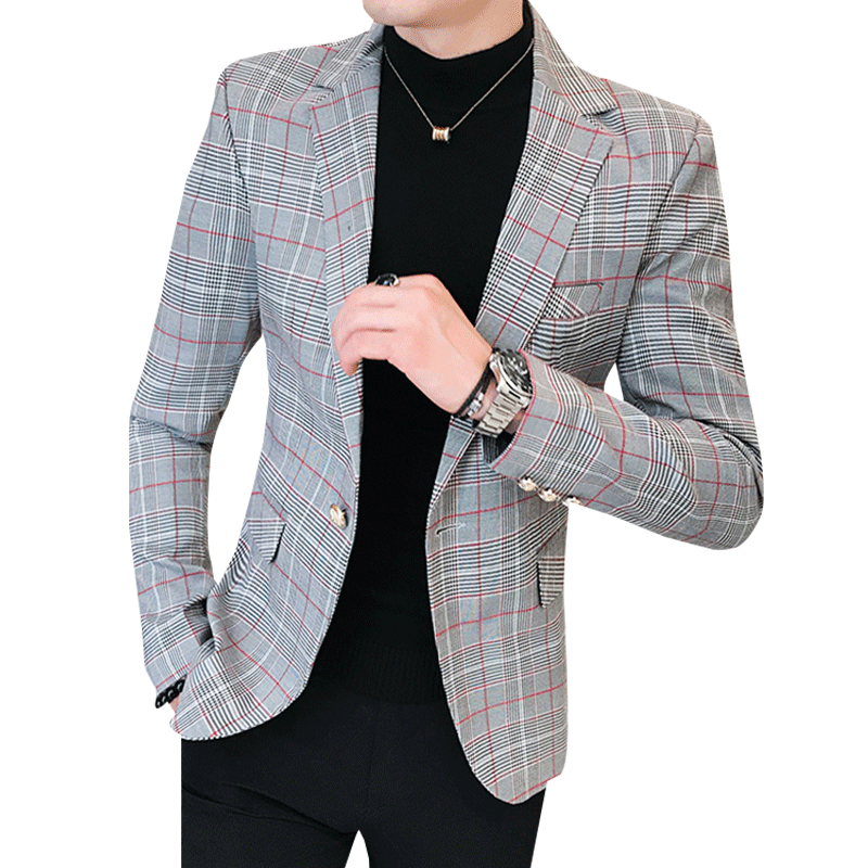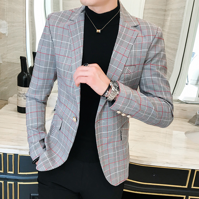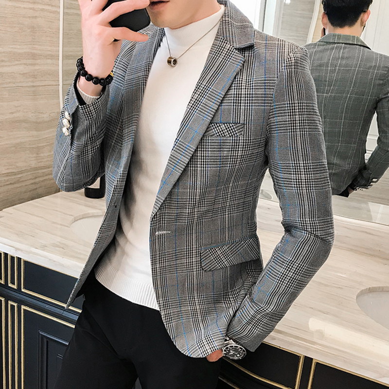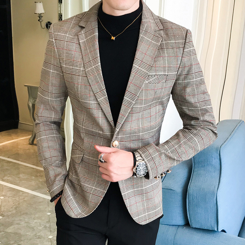 Business Plaid Small Suit Men's Slim Trend Korean Version Handsome Autumn Small Suit Jacket Thin Casual Single West