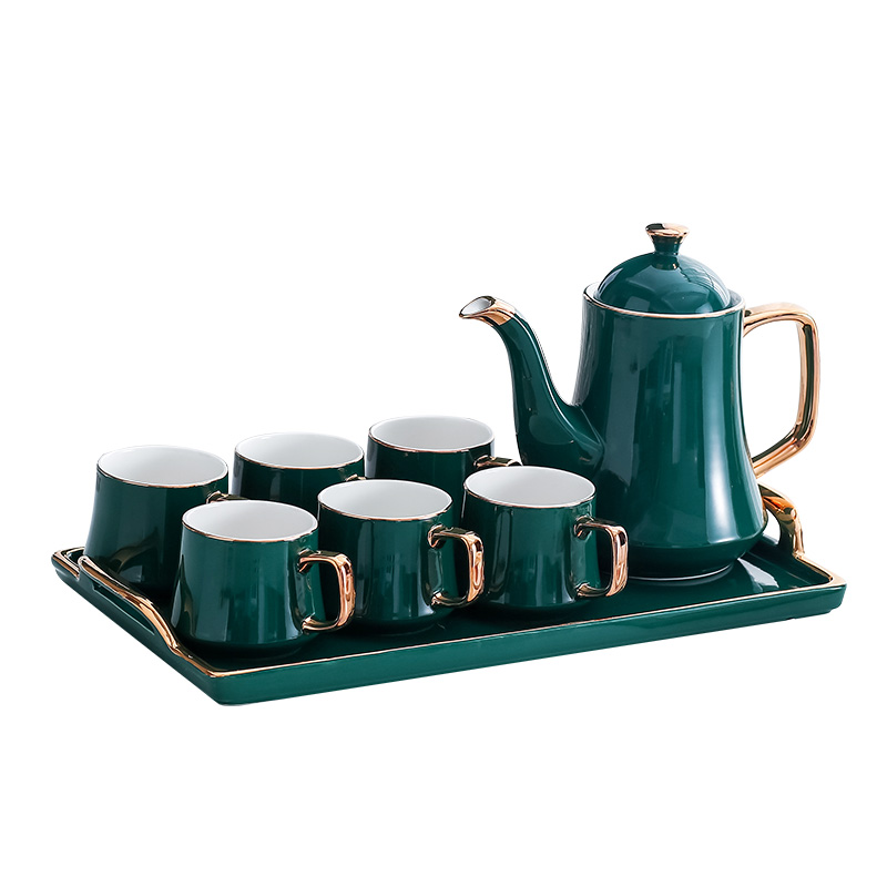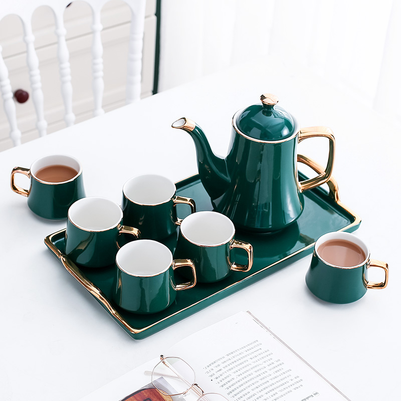 Nordic light luxury emerald ceramic coffee cup set household tea set with tray black tea cup set tea cup combination