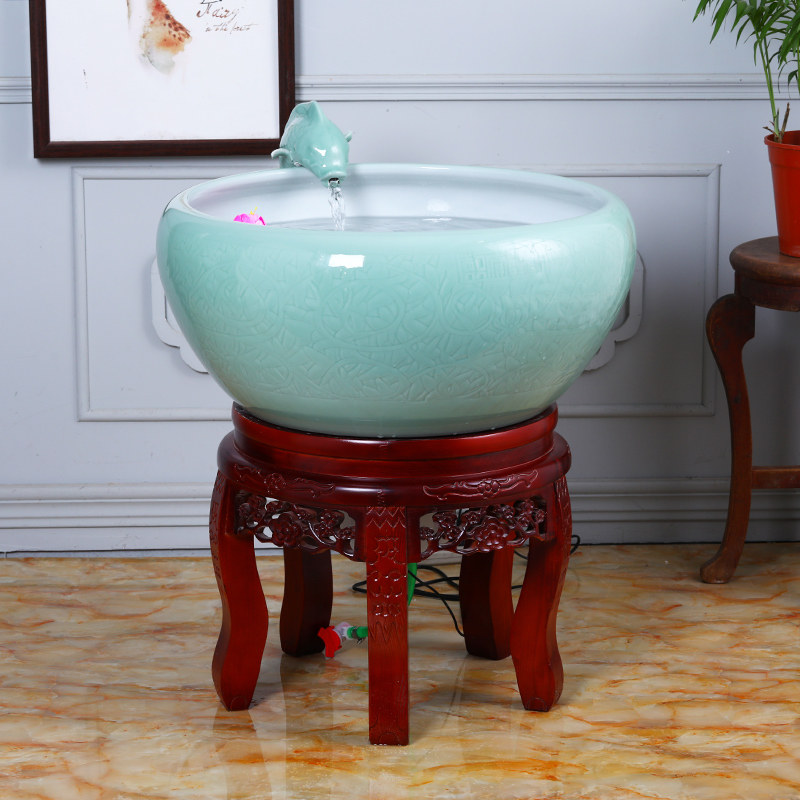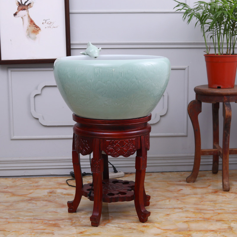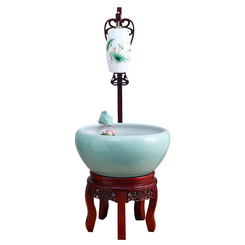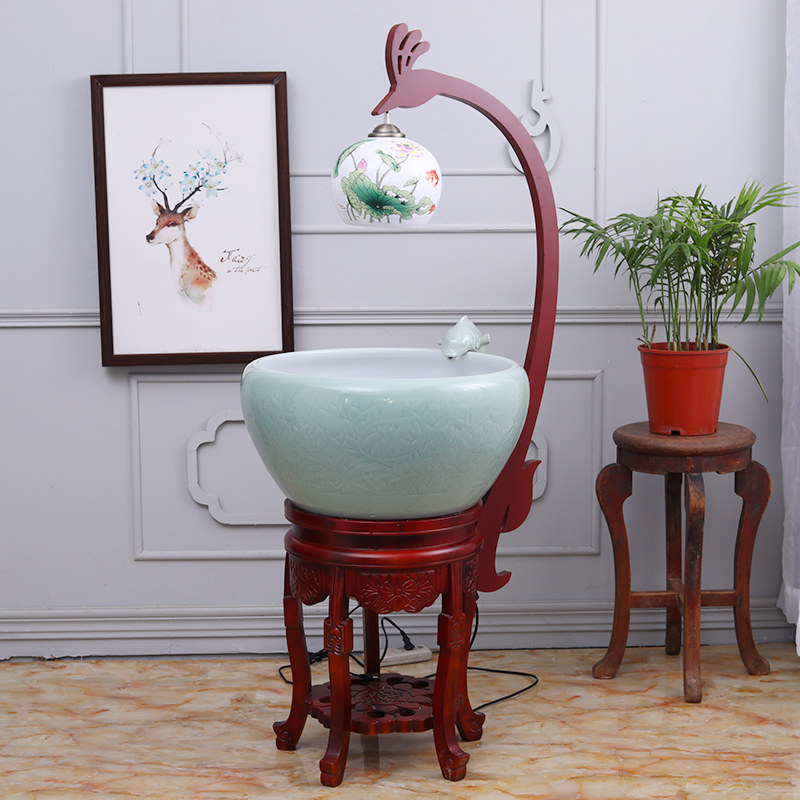 Jingdezhen ceramic fish tank Chinese large number round cylinder fish farming basin water circulation filter flowing water swing piece living-room with lamp