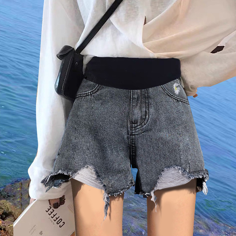 Vintage blue hole pants (hot sale) Hot sale small daisy retro blue Hot sale small daisy gray black light blue personality hair beard hole (hot sale) Main picture ins wind light blue short