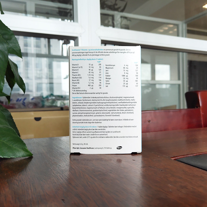 Denmark multi tabs pregnant women vitamin GraVitamin with folic acid 90 tablets