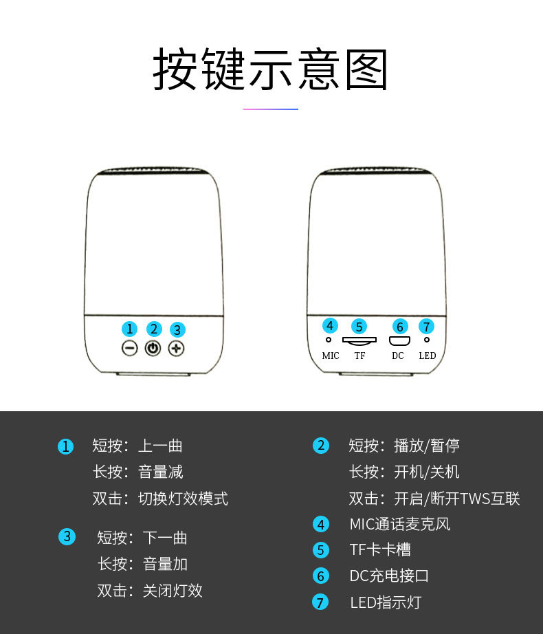 Wireless Bluetooth speaker 3D surround even mobile phone sound home outdoor sound big volume mini portable small player overweight low sound cannon Seven colorful lights flash basket tooth impact