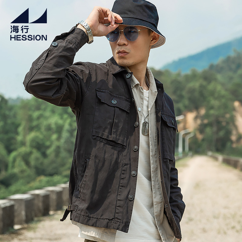 (Break Code Clear 25% Off) Army Green Workwear Jacket Men's Spring and Autumn Heavyweight Retro Top Casual Lapel Jacket