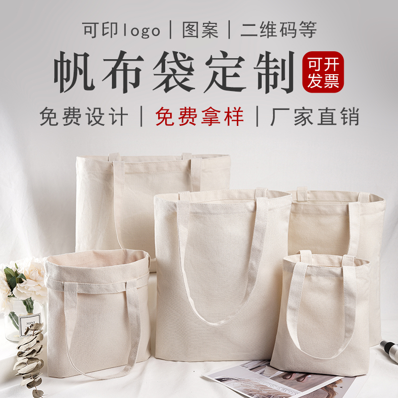 Canvas bag custom logo cotton bag custom print pattern eco-friendly shopping linen backpack promotional bundle pocket custom