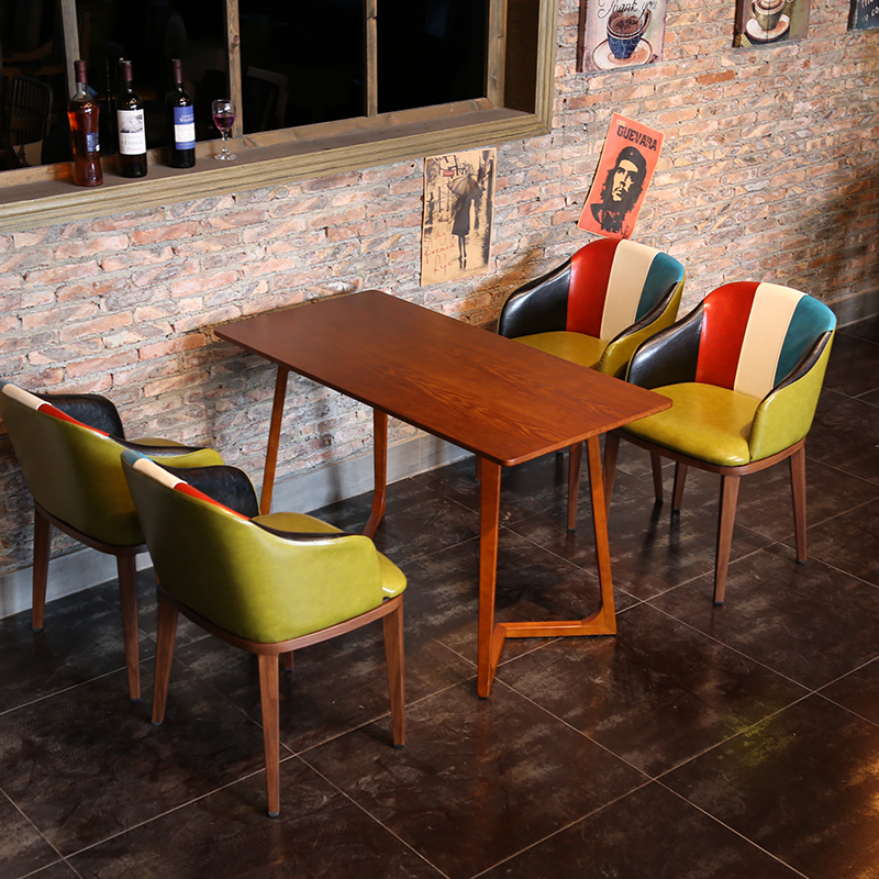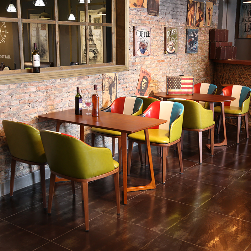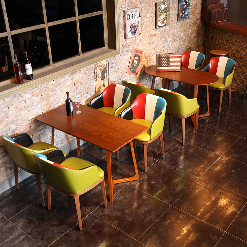 Nordic Retro Casual Talks Milk Tea Sweet Shop Solid Wood Table And Chairs Combined Themed West Restaurant Cafe Sofa Chair