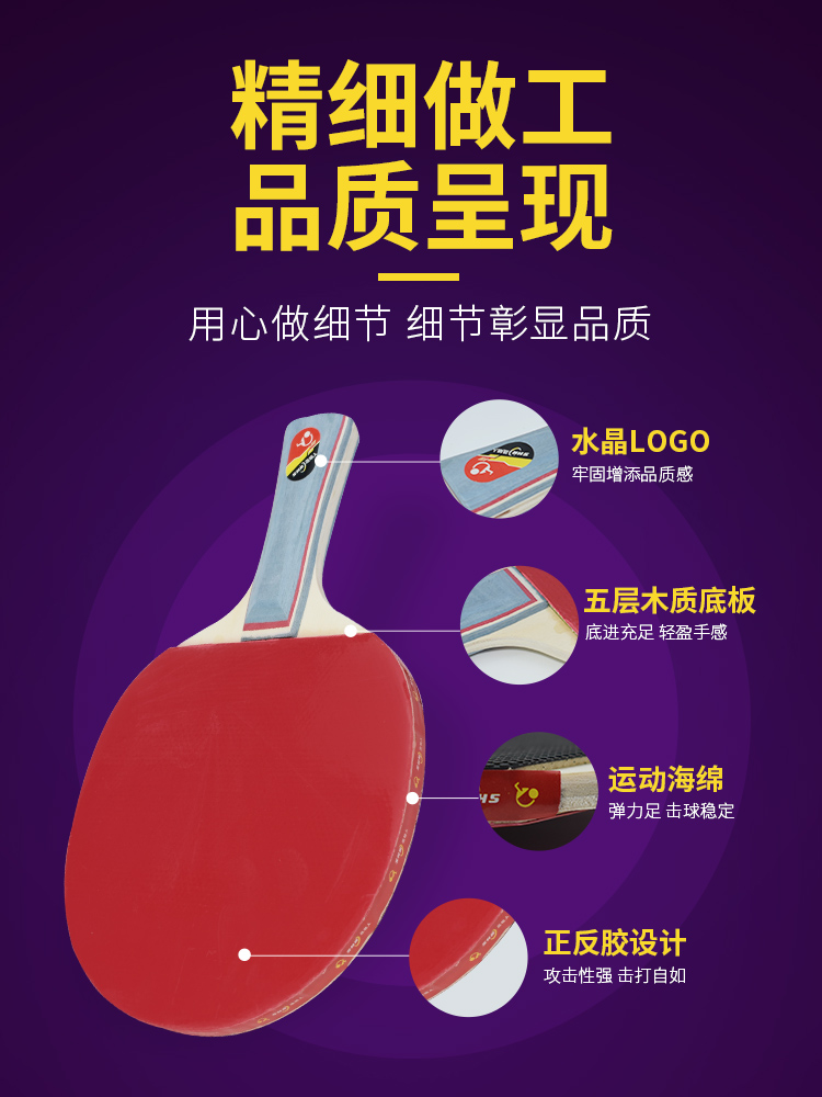 Ping-pong racket single-shot double shooting of children Primary students Samsung Professional level Competition Bing Pong Racket 2 only fit straight and straight