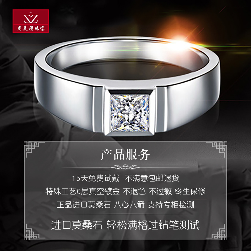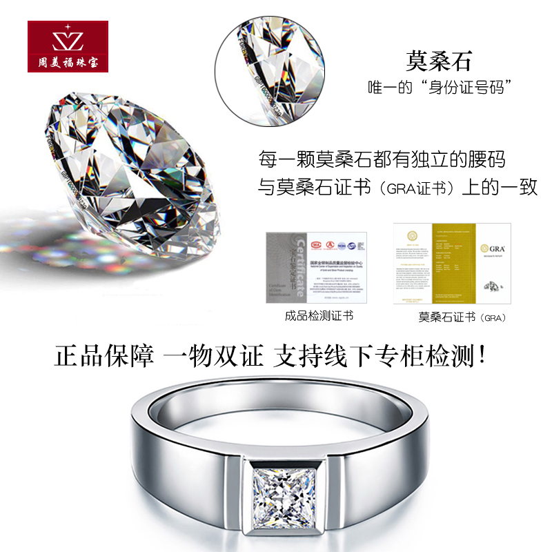 Square mo sang shi men's ring (40) luxury mo sang shi nv jie (1 karat) radius mo sang shi couple dui jie 18K platinum gold diamond ring customization (deposit)