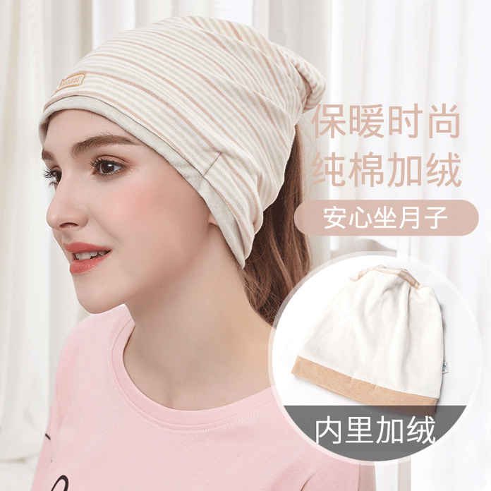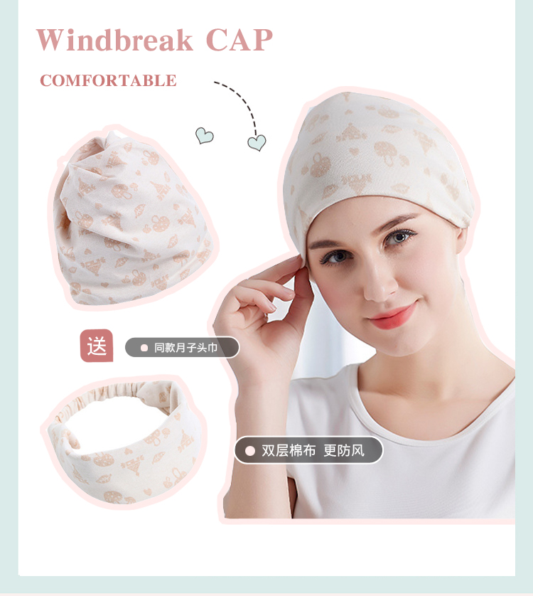 Maternity confinement hat postpartum autumn and winter cotton windproof spring and autumn style hat net red thin women's turban headband pregnant women