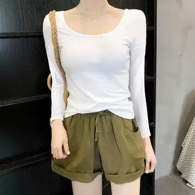 Base shirt female spring and autumn Joker u collar low collar long sleeve T-shirt women autumn and winter cotton tight backless black top