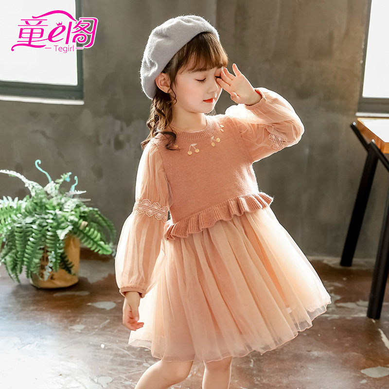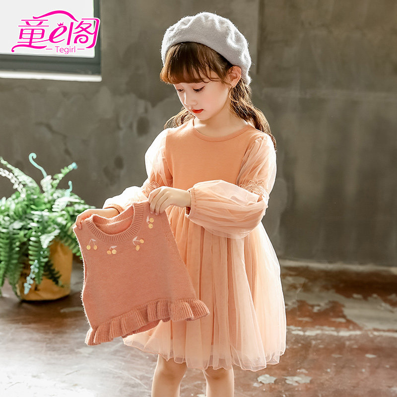 Child Clothing Children Hair Line Vest Yarn Dress Two Sets Autumn Winter Ladies Knitted Cover Skirt Girl waistcoat mesh yarn dress suit