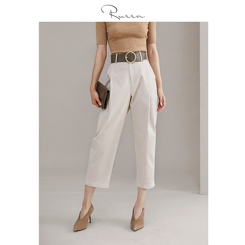 Rui time fall rate sex retro modern urban fog belt folded tapered ankle-length pants women's spring trousers 66