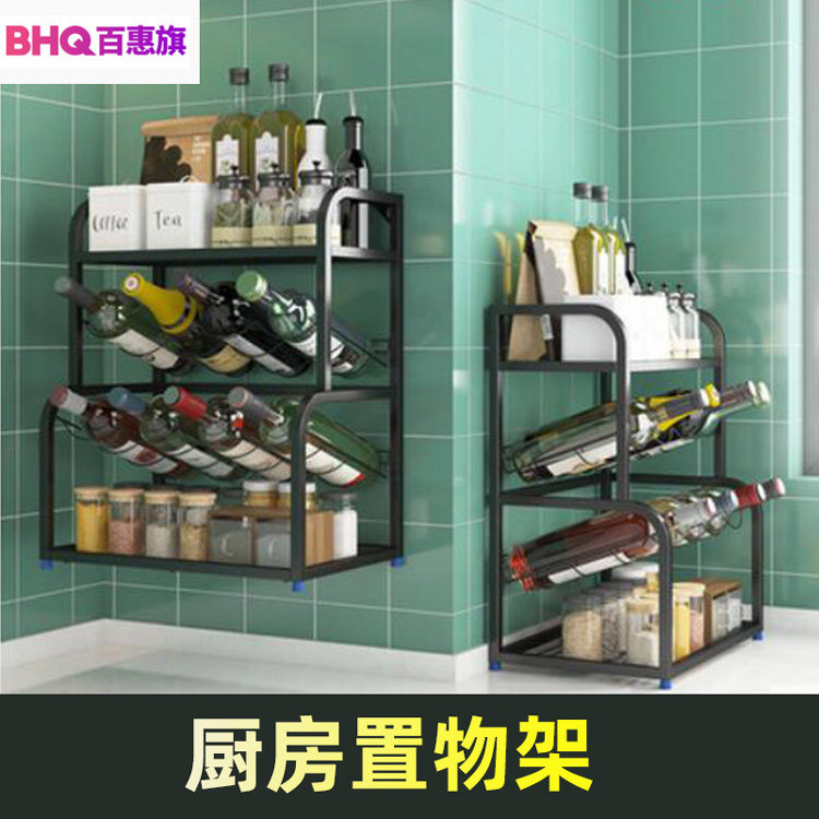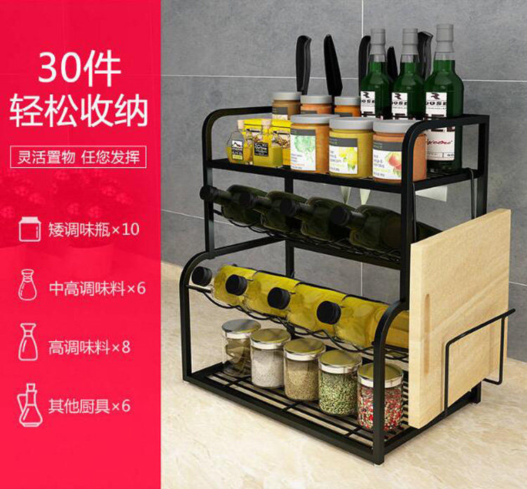 Stainless steel oblique mouth seasoning tank shelf Kitchen household countertop three-layer condiment space-saving storage artifact shelf