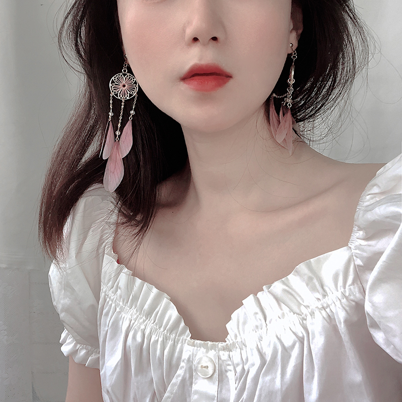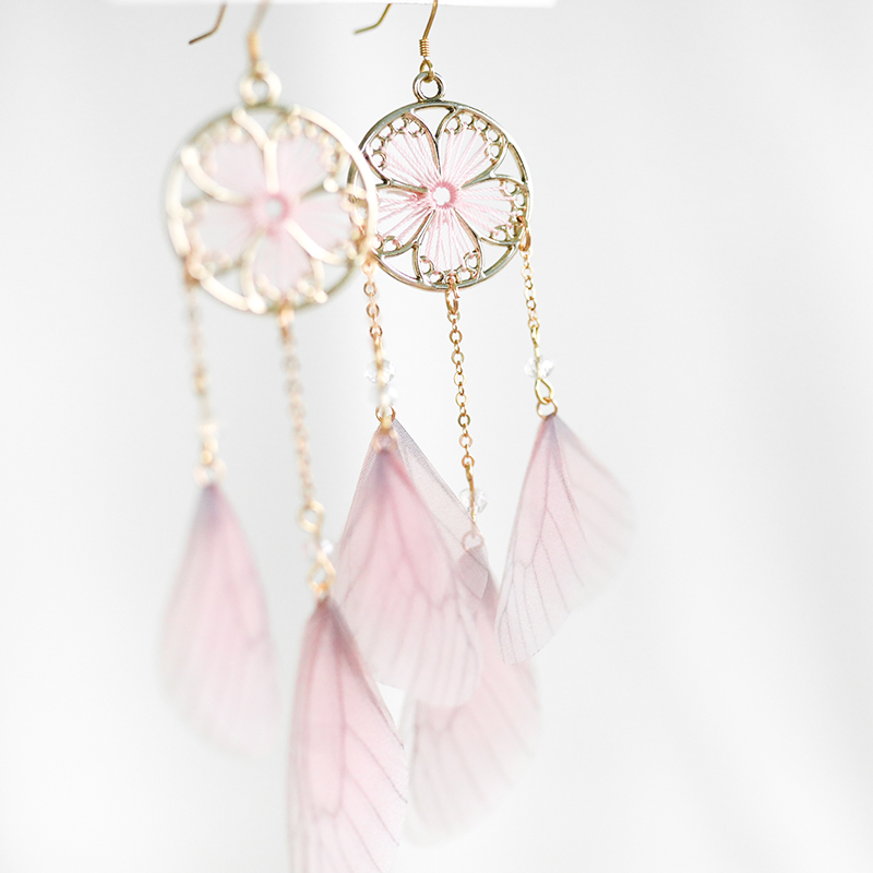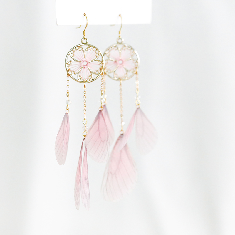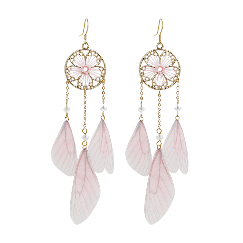 Dream - net shape dream - crash pink butterfly wings stream long earrings and fairyline hole ear clip