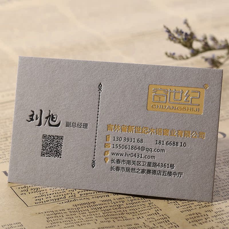 High-grade business card production free design thickened concave and convex bronzing relief business high-grade concave creative business card production Gray tissue paper expedited double-sided printing personality shaped business card