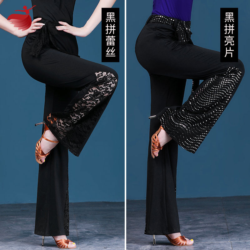 Qinglang Latin dance long pants female adult summer new body Body Stitching Pants National Mark Dance Social Dance Suit