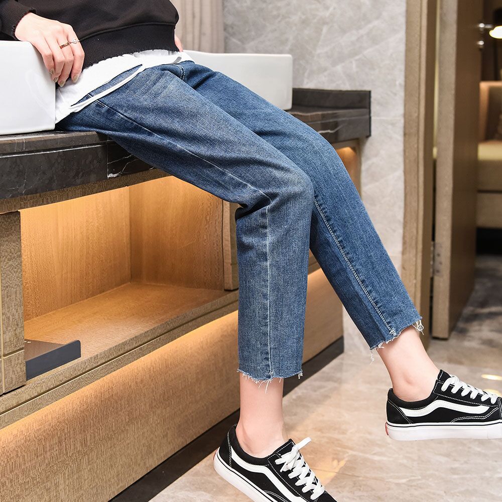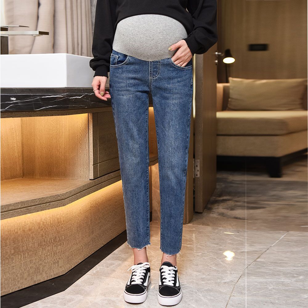 Plus velvet pregnant women jeans autumn and winter wear ankle-length pants 2021 spring trousers slim belly pants straight pants tide