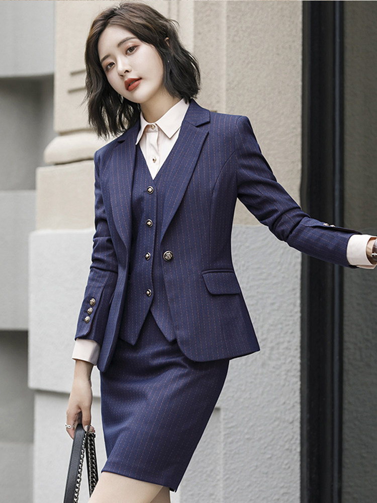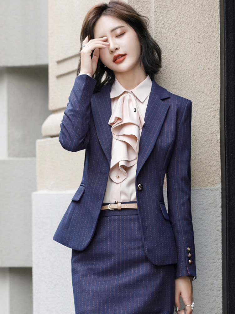 Blue Striped Jacket Pants Blue Striped Jacket Skirt Blue Striped Jacket Skirt White Shirt Blue Striped Jacket Pants White Shirt Blue Striped Jacket Vest Skirt