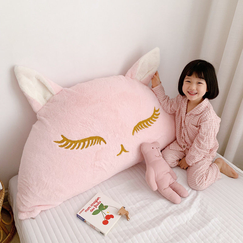 Soft cute bedside cushion princess big back bunny ears ins cute girly style big pillow pink dormitory pillow