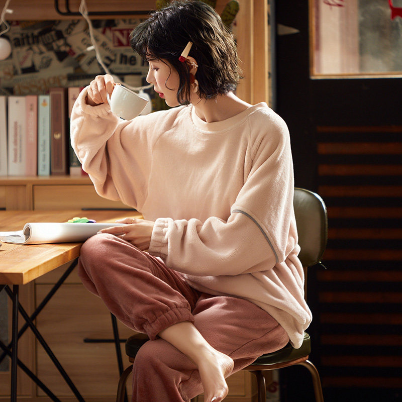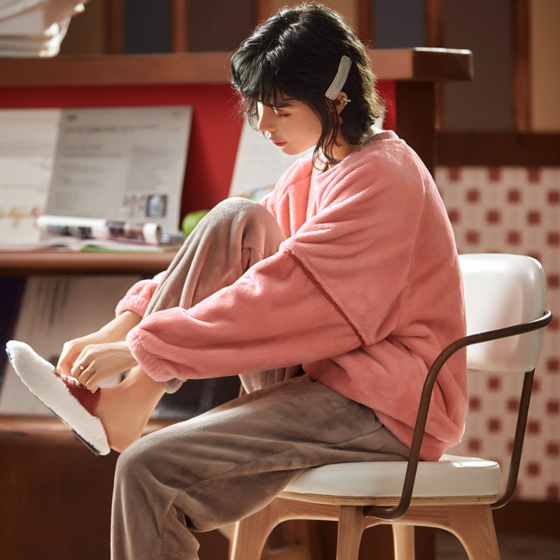 Pajamas women's autumn and winter coral velvet thickened velvet pullover autumn and winter flannel sweet and lovely home suit set