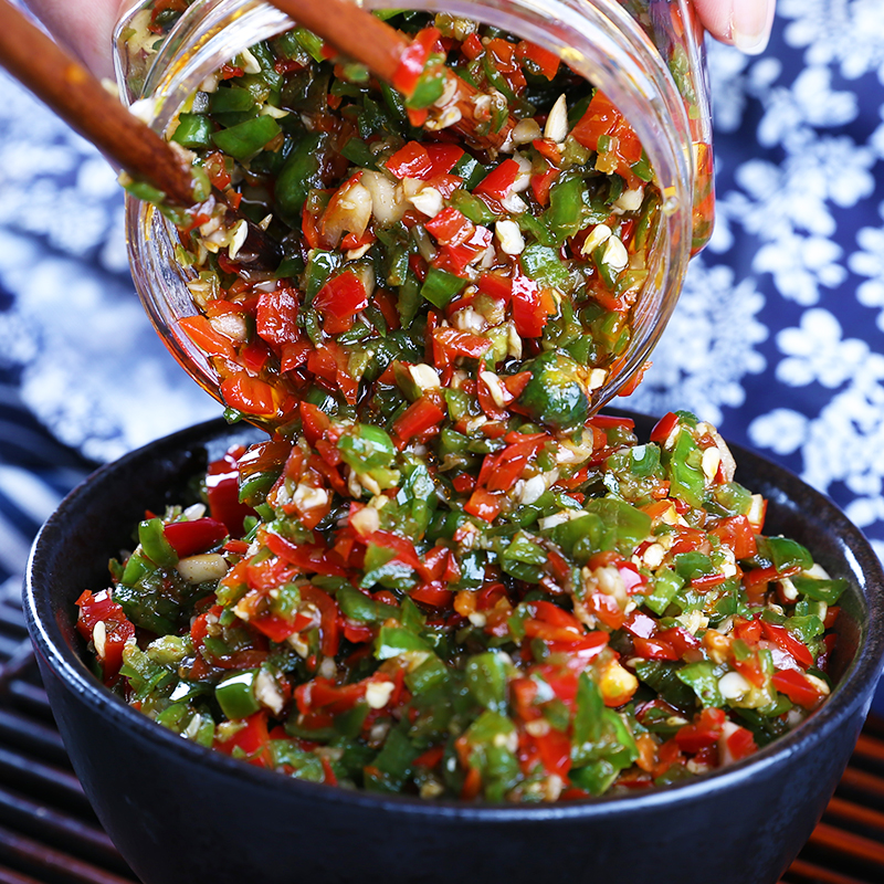 Hunan Farmhouse Special Spicy Colorful Garlic Sauce Chilli Jam Homemade Handmade Savory Spicy Chopped Chili Peppers Lower Rice Dish Millet Chopped Peppers