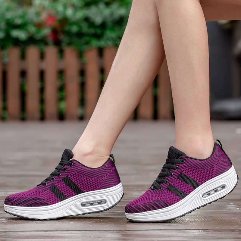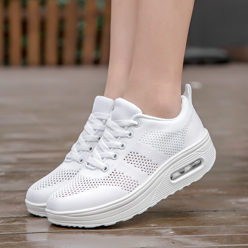 Female Shoes Thick Bottom Mesh Surface Breathable 2021 Spring Summer New Bodybuilding Mom Shoes Air Cushion Casual Sports Rocking Shoes