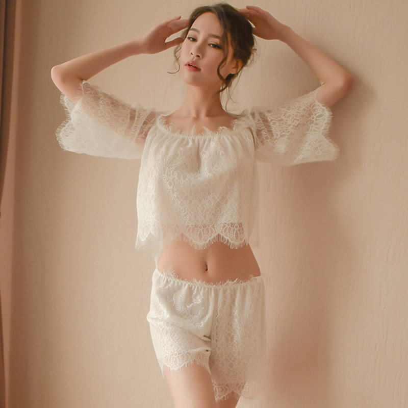 Fairy's sleeping dress with a line of shoulders and shorts for two sets of lace women's sleep-clad sleeping pyjamas and seductive seduction