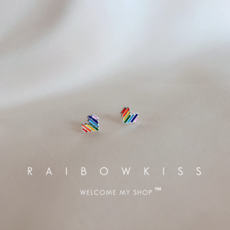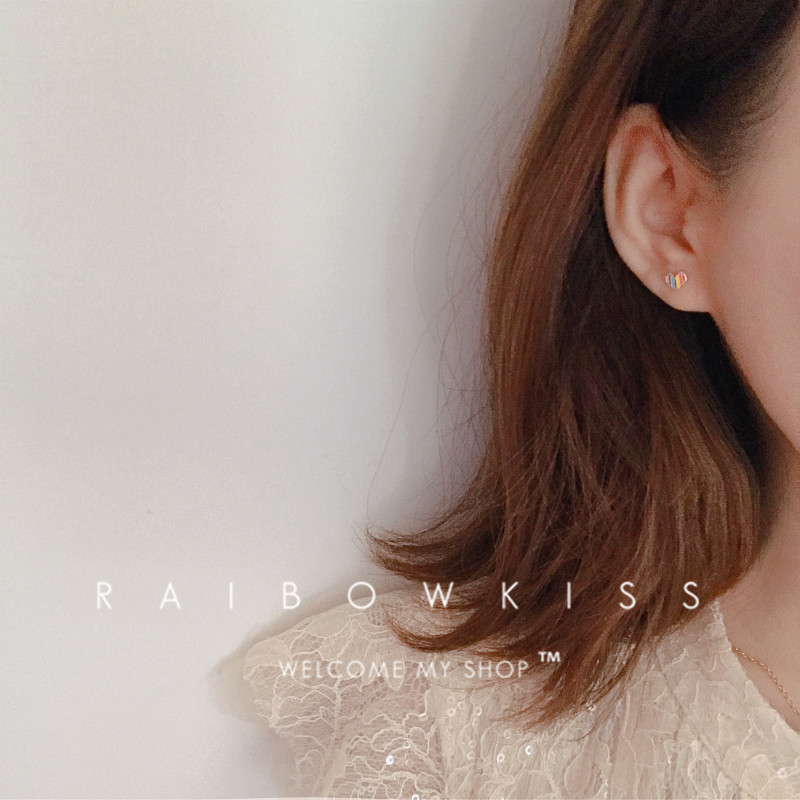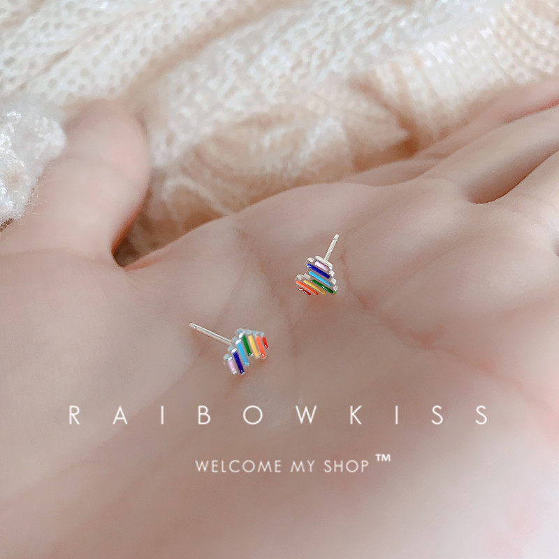 S925 sterling silver rainbow love ear acupuncture niche design color simple ear bone ring small sleep without picking students