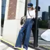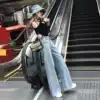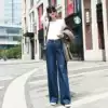Wide leg jeans women's 2019 autumn Korean edition double buckle Hyuna style high waist hanging mopping loose straight wide pants