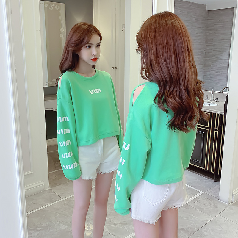 Letter printing crew neck loose sweater women's 2020 autumn new Korean version off-shoulder wild college style long-sleeved jacket