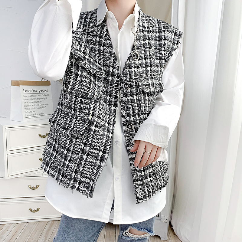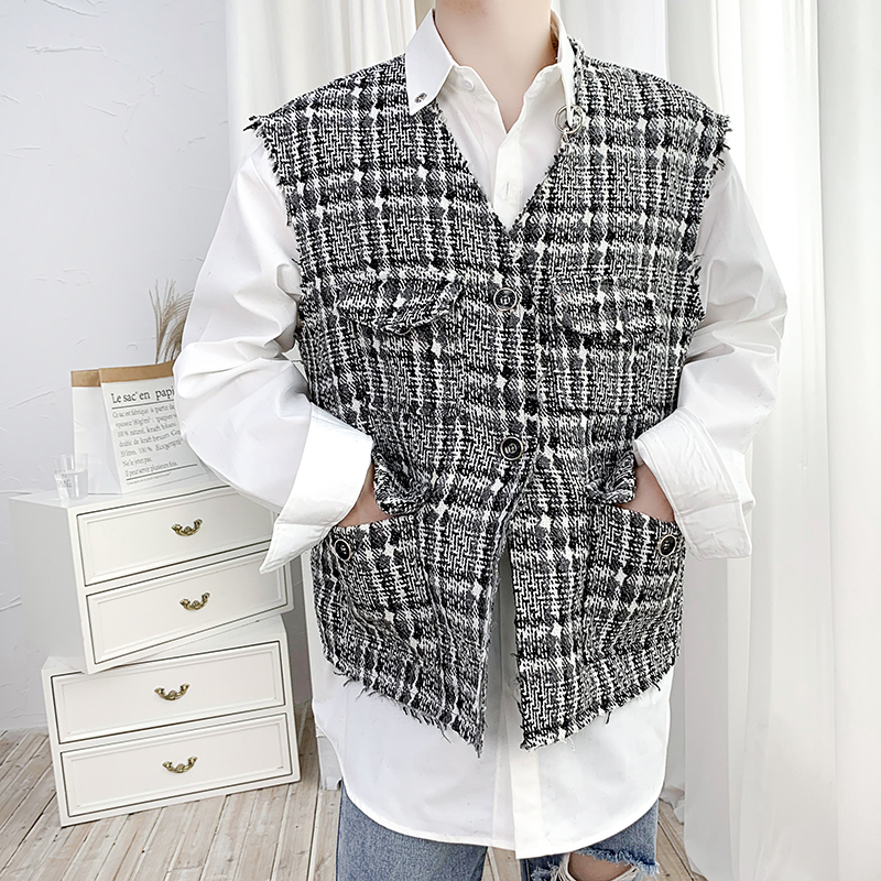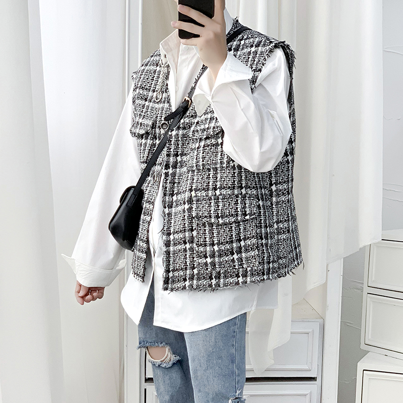 Retro net red French crowdsourced new outlap vests vest men 100 lap fashion sleeveless woven plaid small balsamic wind waistcoat