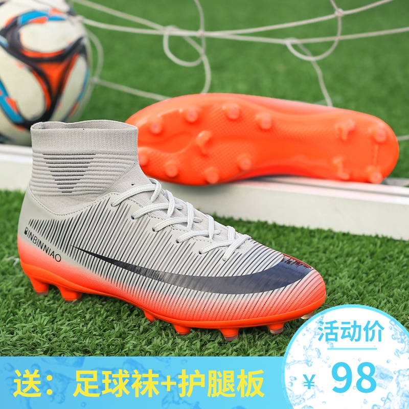 Soccer shoes men's tall barrel broken nails children's primary school students anti-skid training shoes boys and girls C Luo long nails teenagers adult