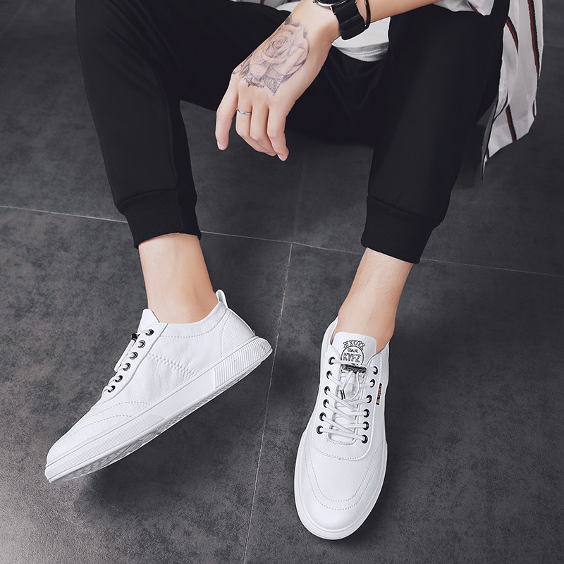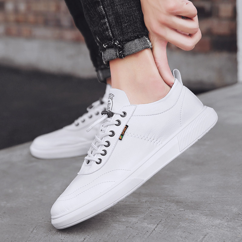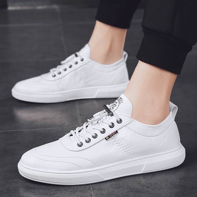 Trendy brand spring and summer leather white shoes men's 2021 new white shoes men's shoes flat all-match shoes Korean version breathable tide shoes