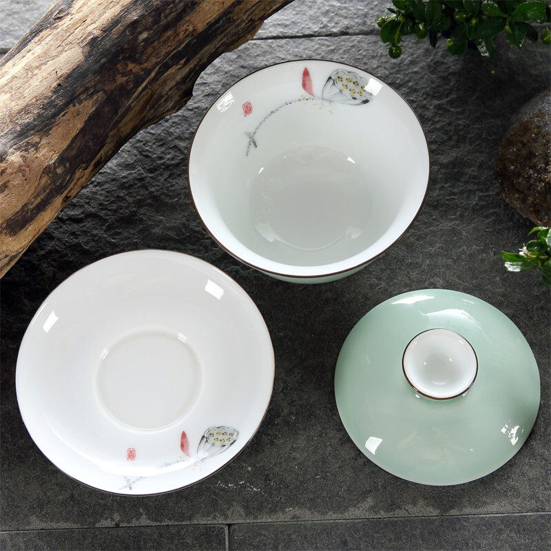 Painted Lotus Cover Bowl 9 pieces Painted Lotus cover Bowl Tea Wash 10 pieces Painted Plum Blossom Cover Bowl 9 pieces Painted Plum Blossom Cover Bowl Tea Wash 10 pieces Painted Lotus rich and expensive cup single color painted lotus