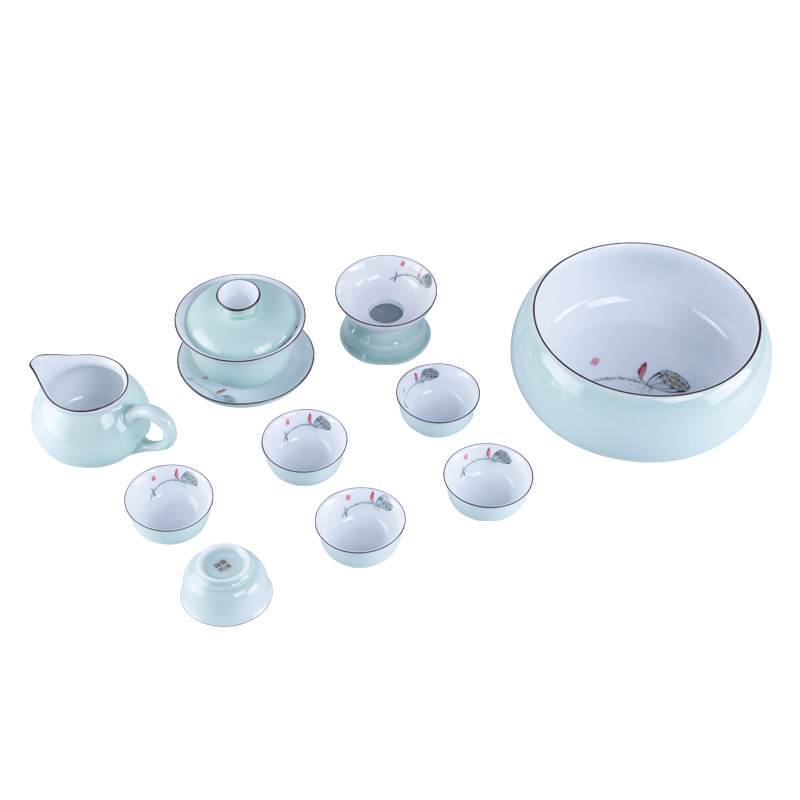 Painted Green Porcelain Kongfu Tea Furniture Set Group Home Ceramic Cover Bowl Tea Wash Brief Chinese Small Tea Cup Living Room Tea House