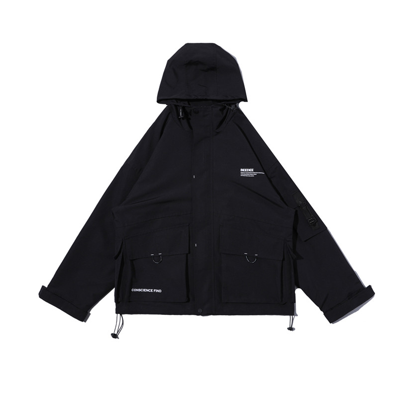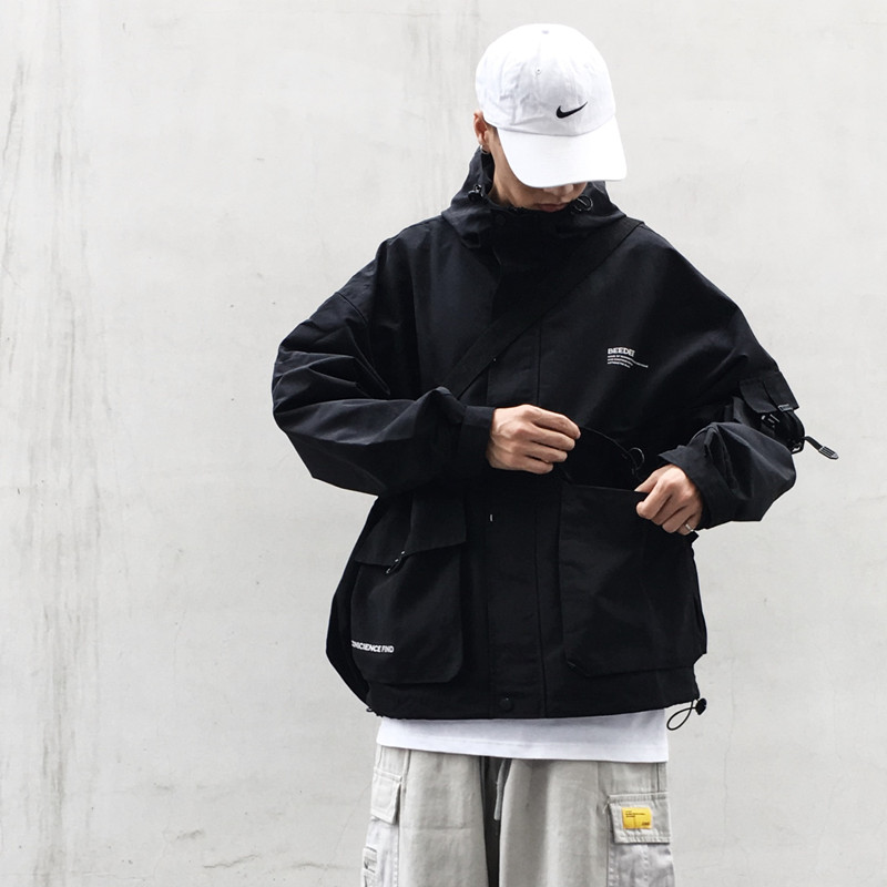 National Tide Card Function Wind Tooling Jacket Men's Trend Students Original Juku Wind BF Loose Even Cap Multi-Pocket Jacket Tide