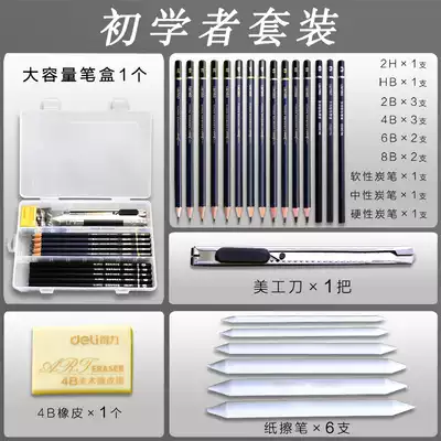 Deli sketch pencil set Full set of beginner painting combination Basic tools Professional art supplies Painting special 8b brush Art student 2 to 14b Sketch pen soft carbon pen 6B3B carbon pen