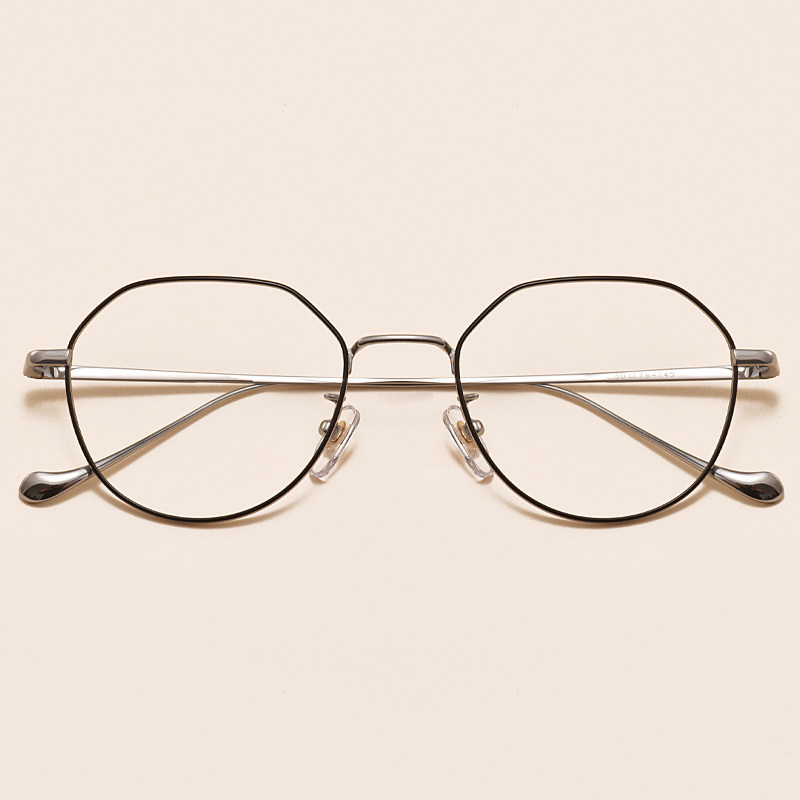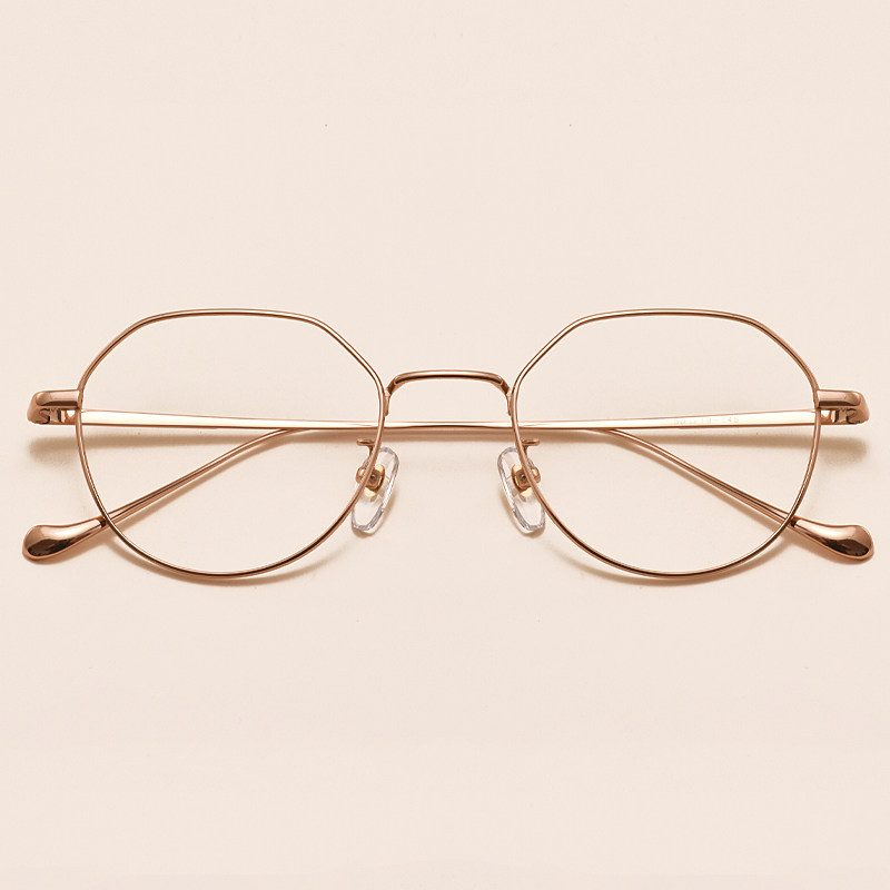 Ultra-light polygonal pure titanium glasses frame women can be equipped with degree myopia height number frame trendy rose gold small face - Taobao
