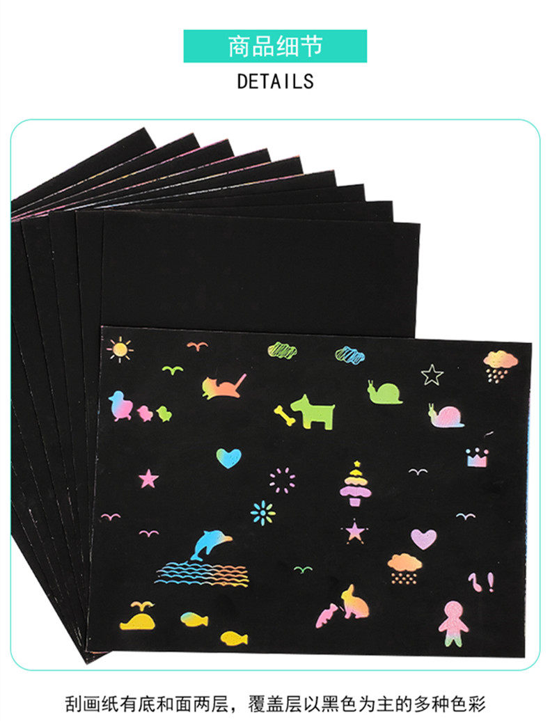 Children's puzzle scraping paper Primary school students A4 colorful scraping painting graffiti painting coloring book painted hanging paper handmade DIY4 open 8 open 16K scraping paper send template bamboo pen