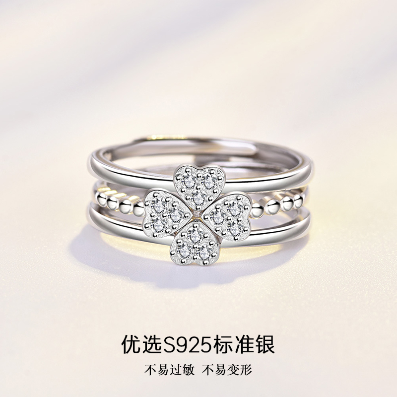 Four-leaf clover ring, exquisite gift box, four-leaf clover ring, love gift box, four-leaf clover ring (pink and white), exquisite gift box, four-leaf clover ring (pink and white), love gift box, four-leaf clover ring (pink)